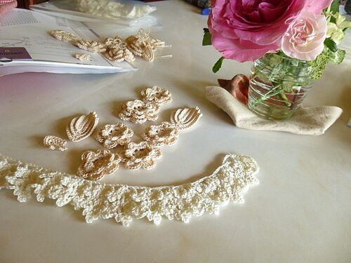 ご訪問いただきありがとうございます。 編み物作家兼講師の wacaです。 5/13(金)五日市教室のレッスンでした。 この日は、2名様がお越しくださりました。 先月からお越しのKさん。 レース編みでかなりの大作のショールを編んでいます。 パーツのお花と…